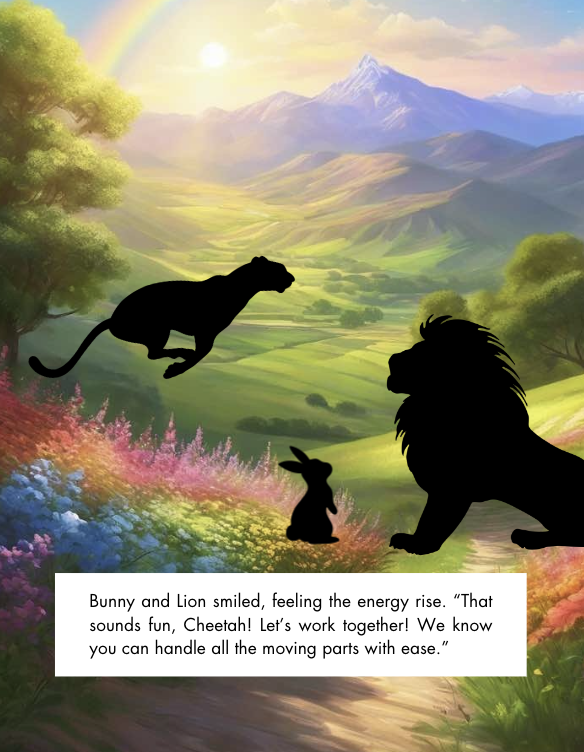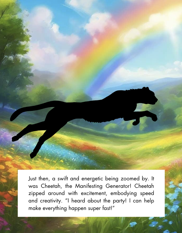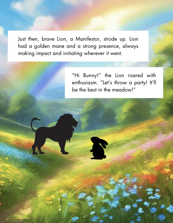 ย The characters include: - Lion: the Manifestor - Cheetah: the Manifesting Generator - Bunny: the Pure Generator - Owl: the Projector - Chameleon: the Reflector